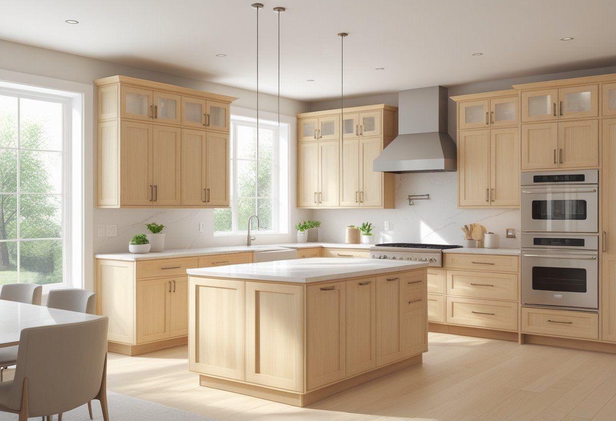 If you plan heavy use areas—near sinks, ranges, or busy prep zones—choose solid white oak for box construction or at least oak veneers over stable plywood. That approach gives you structural strength where it matters most.
