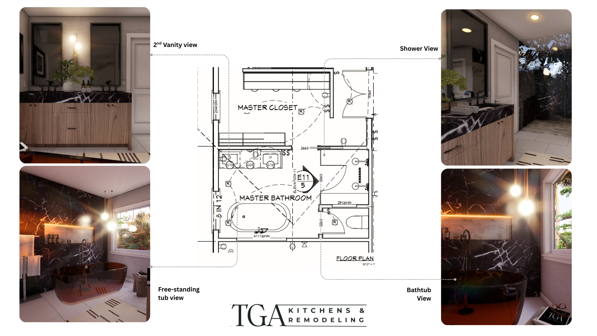 This project reflects the commitment of TGA Kitchens & Remodeling to precision design, premium craftsmanship, and timeless style, elevating an everyday bathroom into an extraordinary living space.